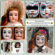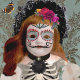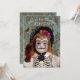 Um convite lindo e um pouco mais formal para a sua celebração ou vigília do Dia dos Mortos, adequada para famílias. A tradicional maquiagem 'La Catrina' é modelada digitalmente no rosto encantador de uma boneca vitoriana antiga da minha coleção pessoal. Um damasco de seda dourada sobre um azul-esverdeado suave fornece um fundo elegante. Feche os convites com adesivos La Catrina correspondentes, também disponíveis em Cheeky_Poppets.
