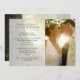 Foto: aniversário de casamento, convite para a cerimônia de renovação. Adicione uma foto da primeira cerimônia de casamento a um lado desta placa horizontal. A imagem de fundo é uma árvore na floresta.