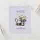 Um fundo bonito de lavanda de concreto com chá e flores convidando convidados para um chá de noiva