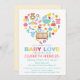 Neném e símbolos de meninos coloridos criam este coração bonito e moderno. Personalize com seu próprio texto. Uma menina e um convite para o bebê também estão disponíveis. Por favor, verifique por loja. Ilustração original por pj_design. Excelente para chás de fraldas de inverno, primavera, verão ou outono. Sexo neutro.