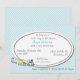 É um convite para chás de fraldas. trabalho de arte gráfico de um aquamarino e um padrão minúsculo branco, como fundo, e uma área de texto oval branco, no meio. Um belo trem de desenho animado, no canto inferior esquerdo, termina este chá de fraldas de convite para agradar à mãe. Personalize o texto de acordo com as necessidades do seu partido.