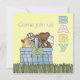 Cesta cheia de presentes de bebê. patinho de borracha. Urso de pelúcia. Babador. as palavras Bebê estão nele. Personalize você mesmo.