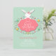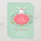 Um convite para chás de fraldas adorável com um coelho branco segurando um painel decorativo com seu título de evento cercado por flores brancas. <br/>() O cartão é fácil de personalizar com seu texto, fonte, cor da fonte e escolha de seis tipos de papel.<br/>() Não exatamente o que você está procurando? Todos os nossos produtos podem ser personalizados para atender às suas necessidades sem custo extra.<br/>() Basta entrar em contato conosco em askpixieprints@aol.com.<br/>() Coordenar os produtos disponíveis: