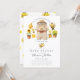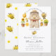 Celebre seu doce pequeno abelhinha com este encantador convite de chá de bebê com tema de abelhas. Este design apresenta um adorável traje de apicultor cercado por abelhas brincalhonas, favo de mel, girassóis e detalhes inspirados em mel. Ilustrações em aquarela suave criam um clima quente e caprichoso perfeito para um chá de bebê com tema de abelhas, mel ou jardim. O fundo com padrão de abelhas e margaridas coordenado adiciona um toque delicioso ao conjunto de papelaria. Personalize com os detalhes do seu evento para criar um convite memorável para amigos e familiares.