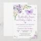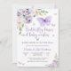 Celebre a chegada iminente com este convite de chá de bebê caprichoso com borboletas, apresentando flores roxas pastéis e borboletas delicadas. Perfeito para homenagear os futuros pais, este design elegante combina charme floral com uma estética suave e sonhadora. O modelo personalizável facilita a personalização de detalhes e a criação de uma lembrança memorável. Ideal para chás de bebê na primavera ou verão, este convite adiciona um toque de magia à sua celebração.