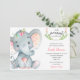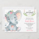 Elefante de aquarela pastel em rosa, cinza e verde para convite para chás de fraldas de menina.