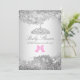 Convite para Chá de Bebê. Laço Rosa & Renda com brilho prateado. Exclusivo Zazzle. Personalize com seus próprios detalhes. POR FAVOR, OBSERVE que todas as imagens são planas! Elas NÃO têm Renda, Laços, Diamantes ou Joias reais!!