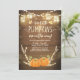 ♥ Um convite de chá de bebê fofo e divertido para um pequeno abobrinha a caminho! Fundo de madeira rústica com luzes de corda e duas pequenas abobrinhas.