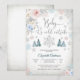 Celebre a alegria de um novo nascimento com este encantador convite de chá de bebê de inverno, apresentando flocos de neve pastéis, árvores de pinheiro e detalhes florais. O elegante design "Bebê, está frio lá fora" define um tom sazonal aconchegante, perfeito para reuniões de inverno. Personalize com detalhes do evento para criar um souvenir memorável para os convidados. Este convite elegante combina charme caprichoso com elegância moderna, tornando-o ideal para chás de bebê durante os meses mais frios.