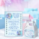 "Desejos de Mirtilo e Beijos de Gnomo" é um convite que captura lindamente a essência da celebração de uma nova vida. Este design apresenta nuvens, tons azuis e roxos, tornando-o adequado para um Chá de Bebê Menino, enquanto as gnomas meninas com saias fofas também o tornam apropriado para um Chá de Bebê Menina. Este tema encantador de mirtilos e gnomos incorpora a magia de receber um novo bebê. A imagem deliciosa de mirtilos suculentos combinada com os gnomos caprichosos cria um convite que inspira alegria e maravilha para todos os convidados. Faça o seu chá de bebê inesquecível! Confira nossa coleção para mais ideias divertidas para celebrar essa ocasião especial.