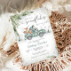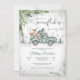 Celebre a chegada do seu pequeno com este encantador convite de chá de bebê do bosque invernal. Com um caminhão verde vintage carregando animais da floresta, balões e uma árvore de Natal, o design é acentuado com galhos de pinheiro, flocos de neve e um cenário de floresta nevada. Perfeito para chás de bebê de inverno, este cartão festivo e caprichoso combina charme rústico com elegância sazonal. Os convidados vão adorar o tema aconchegante do bosque e os detalhes encantadores que tornam este convite verdadeiramente memorável.