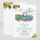 Celebre a chegada do seu pequeno querido com este encantador convite de chá de bebê, apresentando uma antiga camionete azul vintage transbordando de laranjas e folhagens. O design divertido "Oh Boy! A Little Cutie Has Arrived" (Ah, um menino! Chegou um pequeno querido) estabelece um tom alegre para a sua celebração. Perfeito para festas com temas rústicos, cítricos ou de fazenda, este convite combina estilo caprichoso com elegância moderna. Personalize com os detalhes do seu evento para criar um souvenir memorável para familiares e amigos.