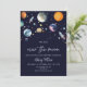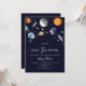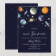 Celebre a chegada iminente de sua pequena estrela com este convite de chuvade de bebê Over the Moon! Com planetas em aquarela, foguetes e estrelas cintilantes contra um céu naval profundo, este design celestial é perfeito para amantes do espaço e celebrações sonhadoras. Personalize com o nome da futura mamãe, data, hora, local e detalhes de RSVP.