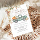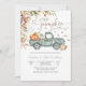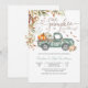 Celebre a chegada de um pequeno com este encantador convite de chá de bebê de outono, apresentando um caminhão verde vintage cheio de abóboras, flores e folhas festivas de outono. O design quente e sazonal cria uma atmosfera aconchegante perfeita para homenagear os futuros pais. Com fontes elegantes e detalhes rústicos, este convite é ideal para reuniões de outono, chás de bebê temáticos de abóbora e celebrações de colheita. Personalize facilmente para tornar seu evento inesquecível.