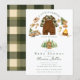 Celebre sua mais nova aventura com este encantador convite de Chá de Bebê do Pequeno Acampante. Com adoráveis ilustrações de acampamento na floresta, incluindo um conjunto de roupa de bebê, trailer de camping, árvores da floresta, ursinho, bússola, fogueira e detalhes rústicos ao ar livre, este design captura perfeitamente o espírito aconchegante de um tema de acampamento na floresta. As cores terrosas quentes combinadas com um padrão xadrez verde clássico no verso criam um visual doce e rústico que é perfeito para dar as boas-vindas ao seu pequeno explorador. Ideal para chás de bebê na floresta, temas de acampamento, celebrações ao ar livre ou festas rústicas de bebê.