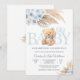 Celebre com estilo com este encantador convite de chá de bebê que apresenta um adorável ursinho de pelúcia segurando balões, elegantes detalhes florais em azul suave e bege, e tipografia moderna. Perfeito para homenagear os futuros pais, este cartão personalizável define o tom para uma reunião alegre. Criado com uma paleta pastel atemporal, é ideal para chás de bebê, festas de revelação de sexo ou para dar as boas-vindas a um pequeno. Personalize com detalhes do evento para criar um item de recordação que os convidados vão amar.