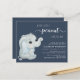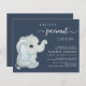 Um belo convite de chá para um bebê amigo do orçamento que apresenta "Um Pequeno Amendoim Doce está a Caminho" em uma simples tipografia branca e um guião azul pastel de um elefante para bebês.