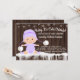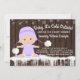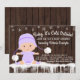 Convite para chá de bebê Garoto é frio lá fora com adorável bebê menina vestindo um lindo chapéu de neve roxo em um fundo de madeira rústica e flocos de neve. Estes convites de chá de bebê com flocos de neve roxos são facilmente personalizados para o seu evento, basta adicionar seus detalhes.