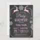 Convite para Chá de Bebê Menina Floco de Neve Cervo de Inverno. Floco de Neve Branco e Rosa. Convite para Chá de Bebê Menina. Convite para Chá de Bebê de Feriado de Inverno. Fundo de Quadro Negro. Preto e Branco. Para personalização adicional, clique no botão "Personalize" e use nossa ferramenta de design para modificar este modelo.
