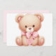 Crie um convite de chá de fraldas amoroso que apresente cor rosa como a cor focal. Excelente para celebrações de chá de menina. A frente apresenta um ursinho de pelúcia bonito e amoroso vestindo um arco rosa com texto que você pode personalizar. As costas têm os detalhes do chá da menina. Parte da coleção de Design cor-de-rosa do Urso de Teddy. Use a modelo para criar seu próprio convite para ursos de pelúcia cor-de-rosa.