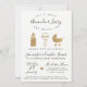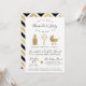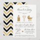 Este convite para Chá de Bebê Shake Rattle and Roll é uma versão moderna de um tema clássico. Este convite para chá de bebê é perfeito para mães de primeira viagem, chás de bebê para casais e festas de fraldas. O design apresenta elementos pretos e dourados falsos com um fundo em chevron para um visual moderno e bonito.