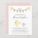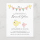 Comemore a mamãe a ser de longas distâncias com um chá de fraldas virtual online. Este divertido convite para a chá de uma menina, amigável em termos de orçamento, com um retrorreflector, apresenta tipografia de cinza macia e dois filhotes amarelos segurando uma faixa verde, cor-de-rosa e menta e anunciando "é uma menina!" O nome da mãe está escrito em um roteiro de tendências de na moda. Um pássaro amarelo giro levando um pintinho rosa caminhando juntos acima dos detalhes da festa. Você pode personalizar facilmente com os detalhes do chá online.