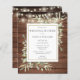 Apresentando delicadas folhas de cor d'água verde e luzes bonito de cordas em um fundo de madeira rústica, este convite para chá de casamento de orçamento chic pode ser personalizado com suas informações especiais sobre chás de panela. Projetado por Thisnotme©