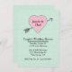 O convite para o chá de casamento de Na moda feito em um visual verde-menta-claro, com um coração cor-de-rosa, com seta, no topo. O texto em preto é totalmente personalizável para atender às suas necessidades de evento. Um convite encantador que o casal vai gostar, com todas as suas memórias de casamento. Escolha o estoque do cartão que você prefere.
