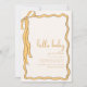 Celebre uma doce chegada com este modelo de convite para chás de fraldas charmoso, com uma calorosa borda de fita amarela-ouro e um manchete lúdico, escrito à mão, de "Olá bebê". O fundo de creme suave e a moldura branca criam um design perfeito, aconchegante e neutro para qualquer celebração de bebês. Personalize facilmente os detalhes, incluindo nome, data, local, RSVP e informações do registro. Ideal para convites impressos e digitais, este modelo adiciona um toque alegre e na moda ao seu planejamento de chás de fraldas.