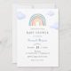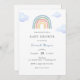 Chá de fraldas com arco-íris multicolorido e nuvens. Personalize com suas informações ou clique em "clique para personalizar mais" para ajustar o tipo de fonte, o tamanho e a cor.