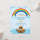 O Bebê-Bebê-Arca de Noah convida com um cheio de barco de animais adoráveis. Design tem nuvens azuis inchadas, água e um arco-íris colorido. O convite para chás de fraldas de arca deste Noah é perfeito para rapazes ou raparigas. Use nosso modelo fácil para personalizar com os detalhes de sua festa.