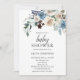 O chá de fraldas Boho apresenta flores azuis e beges neutras, poeirentas, com folhas secas.