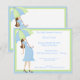 A frente e o verso deste convite para chás de fraldas tem uma mãe tenente segurando um guarda-chuva listrado. As cores de coordenação completam o quadro neste design contemporâneo. Há um monte de texto personalizável para você personalizar este convite com suas informações de participante.