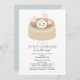 Este convite de chá de fraldas de menina fofo e kawaii "seu pequeno bobinho no caminho" apresenta um empecilho com um rosto sorridente em um navio a vapor chinês em um fundo branco. O verso apresenta um fundo azul bebê com padrões de ondas de cinza. Altere a cor de fundo tanto na frente quanto no verso e personalize-a para suas necessidades.