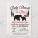 Este convite para chá de fraldas de xadrez de búfalos de lumberjack apresenta dois ursos, pinheiros e tendas, em um plano de fundo de imagem de papel branco escaneado. O texto na metade superior do design não é editável. A parte de trás do convite é um padrão de búfalos de xadrez vermelho e preto. Para mais convites para chuveiros de bebês, por favor visite a loja. Este convite para chás de fraldas de xadrez de búfalos de lumberjack está pronto para ser personalizado.