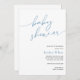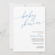 Este simples convite para chás de fraldas apresenta um roteiro de caligrafia moderno em azul. Personalize com os detalhes do evento do seu chá de fraldas para celebrar a mamãe a ser.