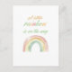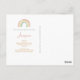 Espalhe a alegria com este convite postal do chá de fraldas arco-íris. Apresentando arco-íris brancos e aquosos em tons quentes e a doce frase "Um Pequeno Arco-Íris Está a Caminho", esta design é uma escolha encantadora e moderna para celebrar a futura mãe. O formato do cartão postal o torna acessível e conveniente — não são necessários envelopes! Perfeito para temas de bebês do arco-íris, chás neutros em termos de gênero, ou celebrações de feto rústico. Personalize facilmente as costas com seus detalhes de eventos para uma maneira simples e na moda de convidar pessoas amadas para um dia especial para honrar a mãe e ou o Pai.