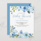 Cartão postal azul de chá de fraldas botânico floral. Trendy, bonito design de cor azul-água floral. Fácil de mudar o texto.