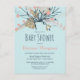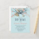 Cor pastel macia em coral, hortelã, chaleira e marrom adornam o topo em um estilo botânico com bagas e cones de pinho com um fundo azul alegre. Esta tipografia de tendência é personalizável ou mantém este estilo divertido como é para sua conveniência. Um convite perfeito e neutro para um bebê ou chá de menina.