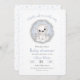 Um convite bonito e moderno para o chá de fraldas em branco e um pouco azul para as comemorações do inverno com um urso polar bebê giro e as estrelas azuis. Chá de fraldas de convite para modelo totalmente editável. - Kate Eden Art