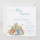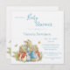 Adorável convite de chá de fraldas de Rabbit desenhado à mão. As cores suaves simples definem o tom de um doce chá de fraldas temático. Um convite tão doce e simples para esse evento especial. Fonte azul e quadro fino foram usados para criar este adorável convite.