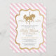 Celebrar a doce mocinha a caminho e a mãe a estar com este belo convite de chá de fraldas personalizável, com o tema do carrossel. *Nota: este convite contém designs de elementos para replicar a aparência de brilho, mas não é impressa nenhuma folga ou folha de papel real.