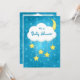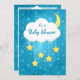 Estrelas são suspensas de uma nuvem contra um fundo azul texturizado. Uma lua amarela espreita atrás da nuvem.