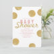 Personalize este Convite para Chá de fraldas Moderno Na moda com círculos grandes negros de brilho dourado em fundo branco com texto cor rosa. Perfeito para uma menina. Note que a brilho dourada é um impressão de cor (amarelo) e não é, na verdade, uma cor metálica dourada, nem uma folha de ouro ou uma folga.
