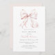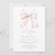 Mínimo convite de chá de fraldas que apresenta um arco rosa elegante e fundo rosa.