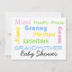 A avó também precisa de um chá de fraldas, especialmente se quiser ser cuidadora do bebê no caminho. Muitos nomes para avós incluídos na frente do cartão.