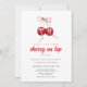Celebre a chegada do seu pequeno com este charmoso convite de chá de fraldas "Cherry on Top"! Perfeito para um encontro doce e sofisticado, este convite apresenta uma ilustração encantadora de cereja adorada com um arco de fita coquete, definindo o tom para um evento adorável. Imagem de fundo de cereja de Freepik.