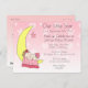A mão de chá de fraldas de uma menina rosa doce puxando o bebê dormindo na lua convida.