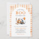 Celebre seu chá de fraldas de outono em estilo fofo com este charmoso convite do Dia das Bruxas! Apresentando uma abóbora sorridente, um chapéu de bruxa estrelado, e um balão de laranja festivo, esta design é embrulhada numa acolhedora fronteira de gingham laranja — perfeita para o outono. Quer você esteja planejando uma festa rústica no quintal ou uma festa confortável no interior, este convite dá o tom para uma celebração doce e ligeiramente assustadora. Ideal para chás de fraldas de outubro e pais amantes da abóbora!