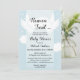 Um convite à chá de fraldas azul de sonho com uma nuvem de sonho com asas de anjo e faíscas mágicas de luz. Bonito para receber um pequeno anjo bebê neste mundo...